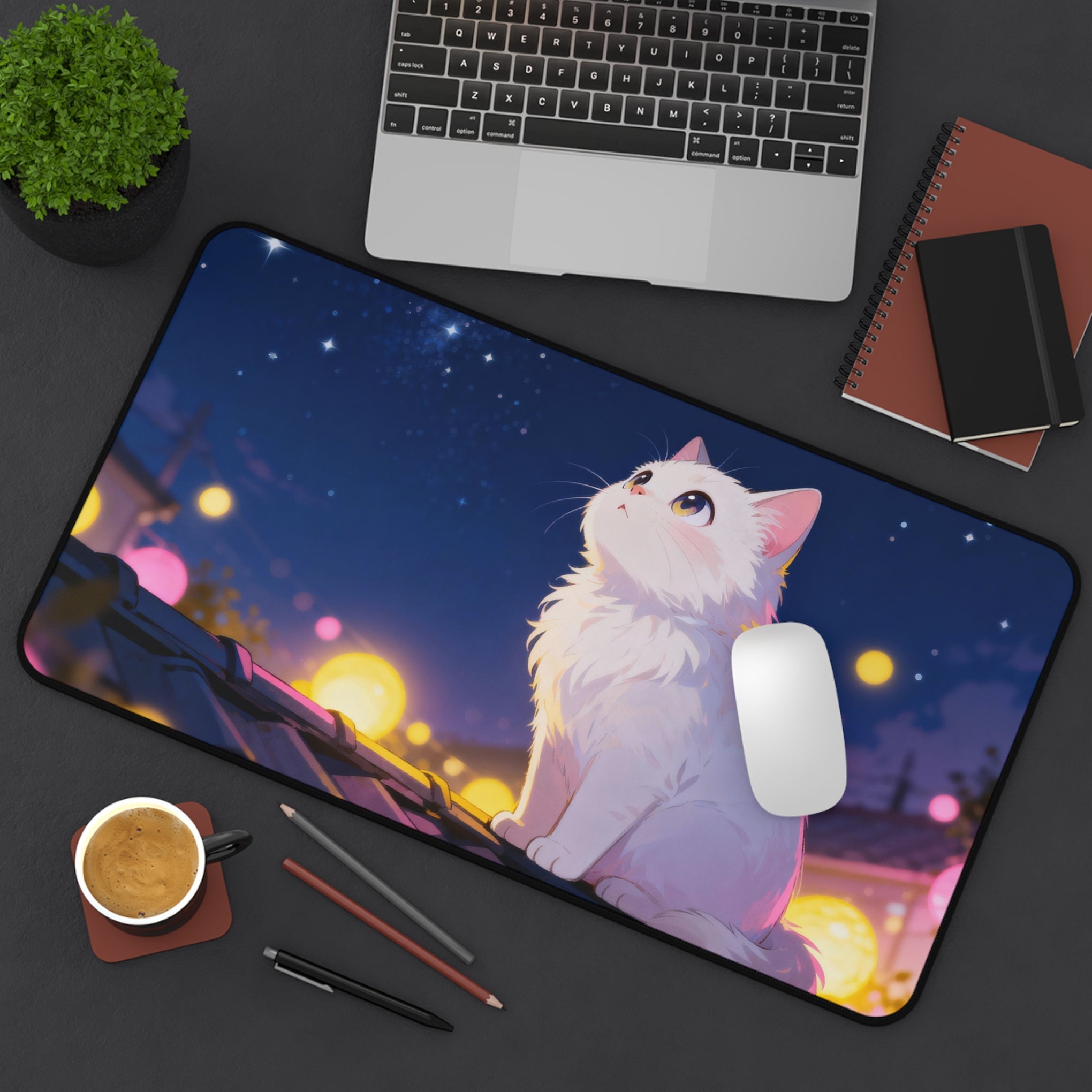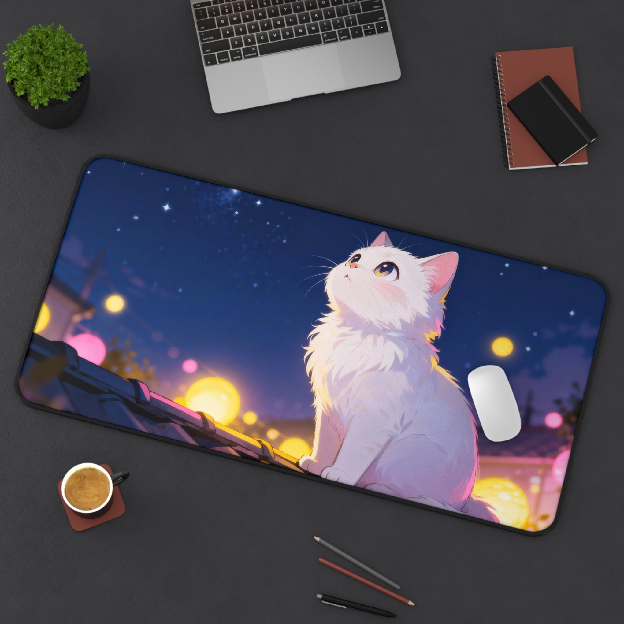 Festival Lights - Cute Anime Cat Desk Mat