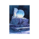 Representing energies of tranquility and steadfastness, Ice Wisp is known to some as a mediator between the waking world and that of the subconscious. When first we caught glimpse of this being, we saw an underground chamber, where cloaked figures would sit in a circle around a large glowing ball of ice sitting atop a grand throne, meditating. The air around the throne is always cold. The sphere is said to hum softly, a strange sound like waves against stone, lulling seekers into trance states where visions unfold.